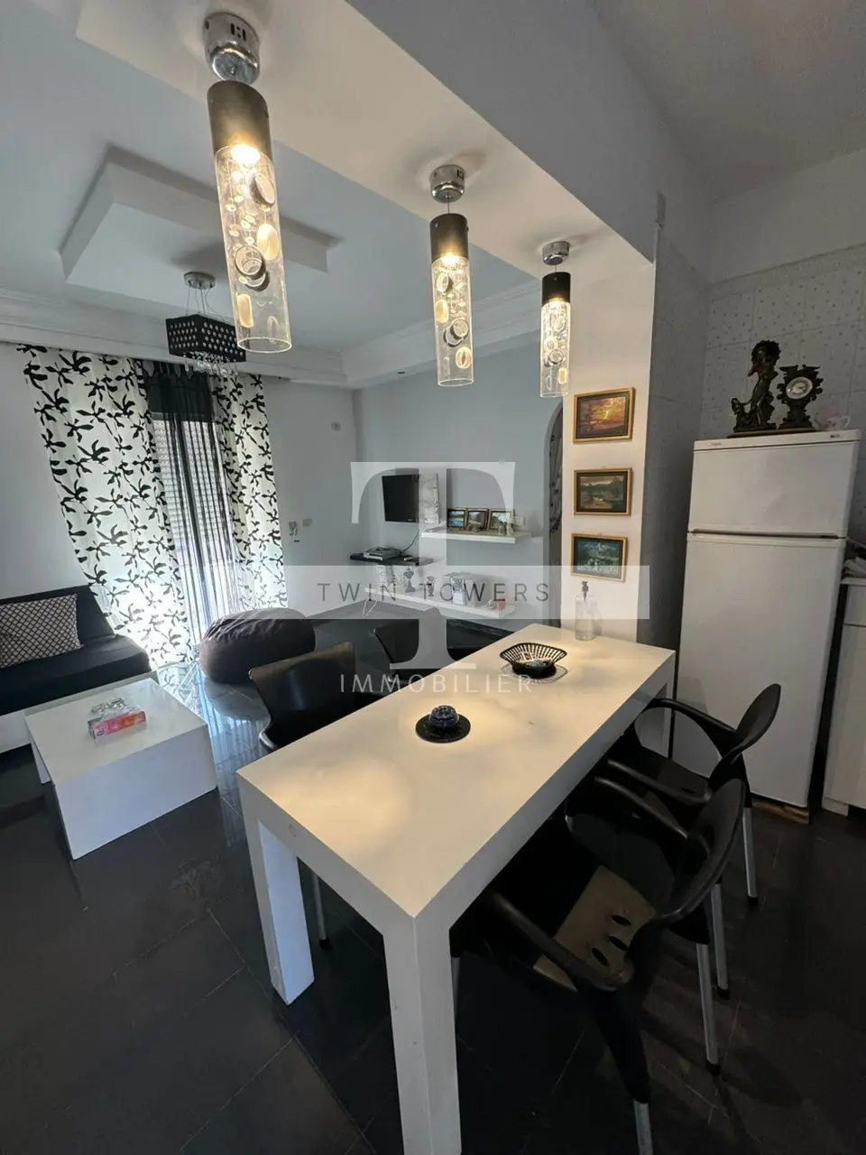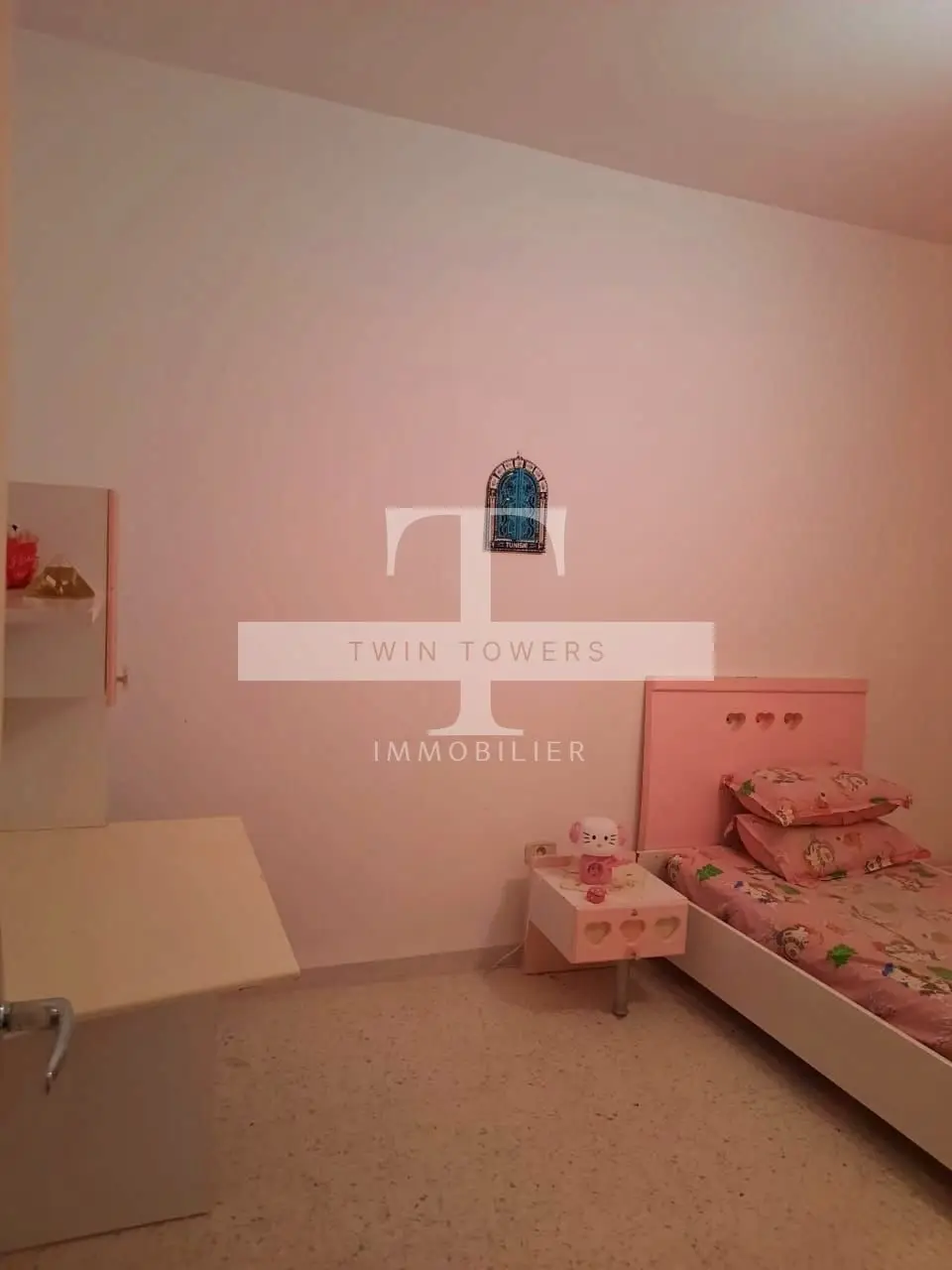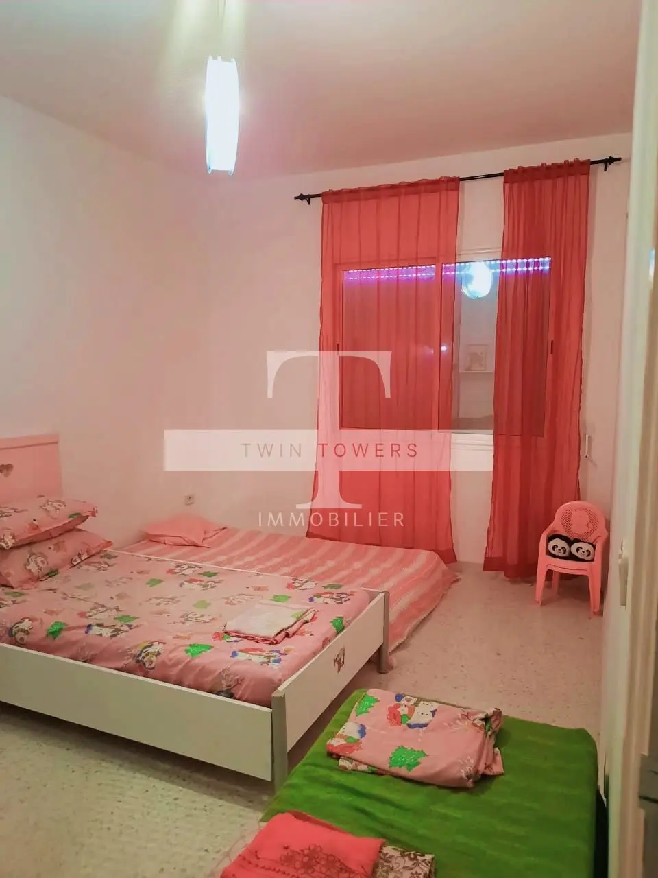 Bel Appartement vue lac/mer à 200 m seulement de la plage et au 3ème étage sans ascenseur d'un immeuble familial trop calme au corniche de Hergla et juste à l'entrée de cette magnifique ville. Un appartement avec deux grandes chambres à coucher, salon avec un grand balcon ouvrant sur le lac et la mer en même temps. Richement meublé, cuisine moderne bien équipée ouvrant sur un séchoir, papiers en règle et titre individuel. Immeuble bien sécurisé, surveillé par des caméras et disposant d'un parking privé et sécurisé pour les voitures des habitants. prix demandé 225.000 MD . Pour plus de détails ou pour une visite, veuillez nous contacter : Mlle Eslem 98 116 700 par téléphone ou sur WhatsApp. E-mail : contact@twintowers-immo.tn // twintowersimmo@gmail.com Notre agence Twin Towers vous souhaite la bienvenue !