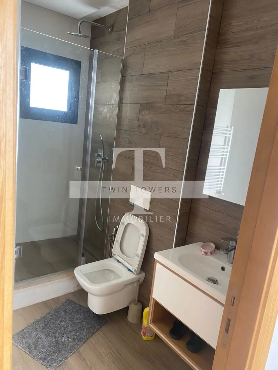 A Vendre APPARTEMENT S+1 haut standing à Sahloul 4 au RDC , d'une Résidence bien gardée avec une place parking sous sol se compose comme suit ✓ Salon ✓ kitchinette équipée ✓ salle d'eau ✓ 01 chambre ✓chauffage centrale ✓ Climatiseur ✓ Gaz de ville ✓ Terrasse ✓ Parking sous sol ✓ Titre individuel pour l'appartement ✓ Titre pour la place parking Prix : 215.000 TND superficie totale : 55 m² et superficie couverte 33 m² Pour plus de détails ou pour une visite, veuillez nous contacter : Mlle Eslem 98 116 700 par téléphone ou sur WhatsApp. E-mail : contact@twintowers-immo.tn // twintowersimmo@gmail.com Notre agence Twin Towers vous souhaite la bienvenue !